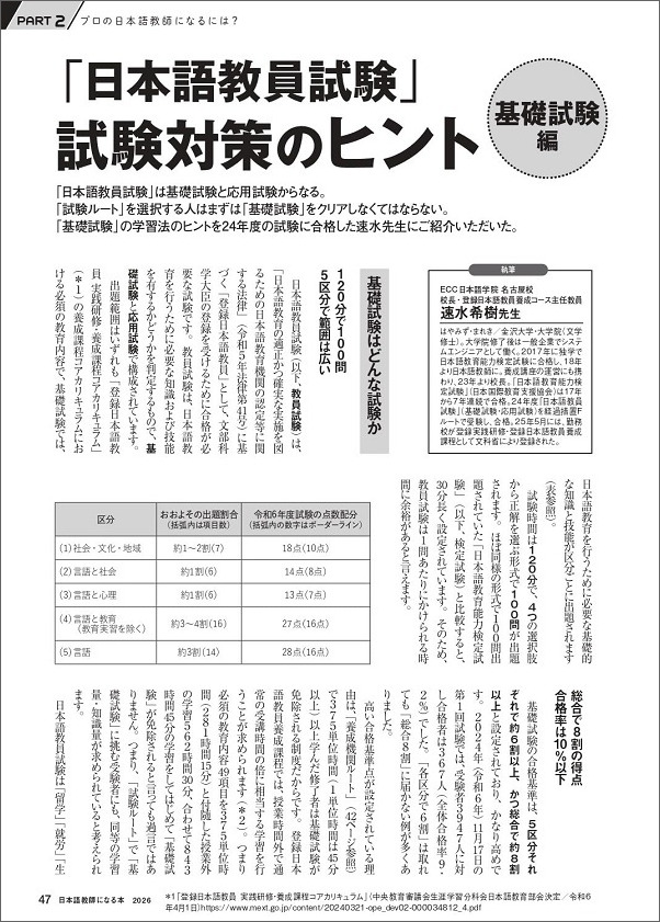 外国人人材の増加に伴い、今後さらなる活躍が期待される職業、「日本語教師」をめざす人におすすめの情報誌です。